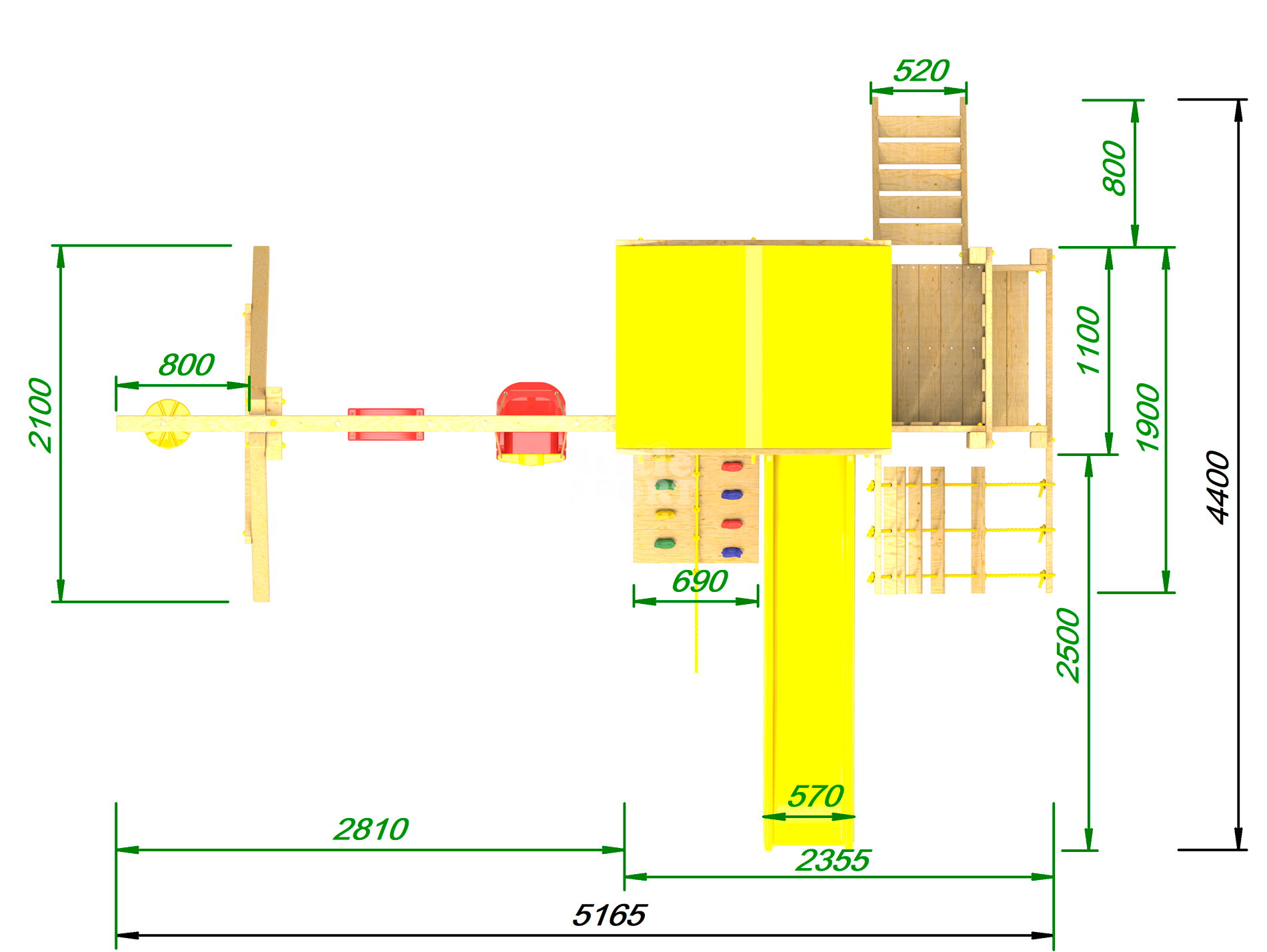 ● деревянная крыша ● трап 2м с канатом ● поручни для лестницы ● диван на цепях двухместный ● столик в песочницу
