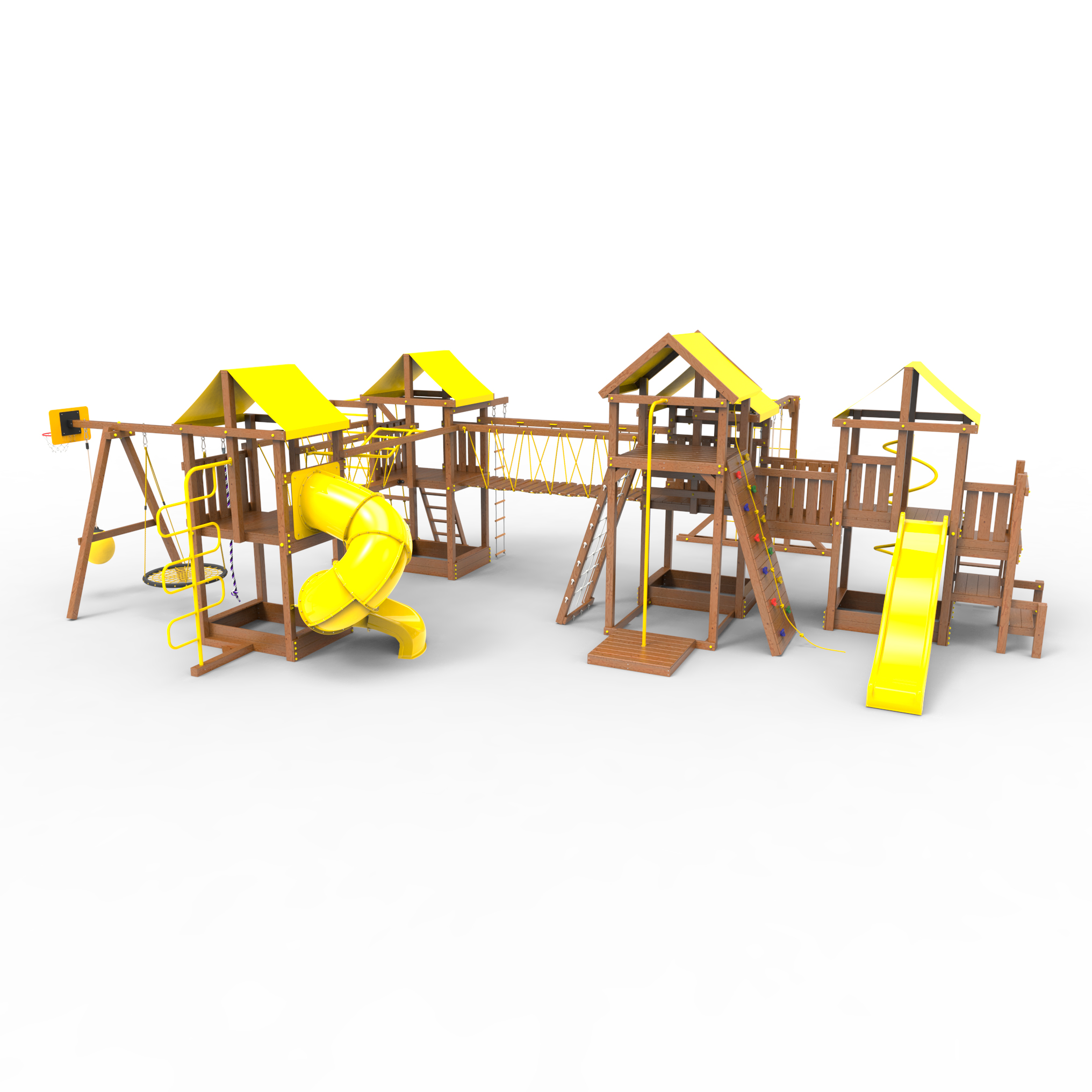| Комплектация | Высокий домик|Два домика|Песочница|Лестница|Шторм-трап|Скалодром|Шведская стенка|Рукоход|Турник|Руфер|Балкон|Столик с лавочками|Баскетбольная корзина|Мостик|Подвесной мост|Горка|Винтовая труба|Спираль|Волна|Пожарный шест|Сеть для лазания|Качели|ЗигЗаг|Переправа |